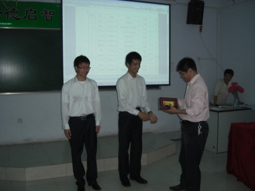 随着音乐的伴奏,参赛选手用语言表达着对母亲的爱,或催人泪下,或感人至深,或慷慨激昂,或低吟浅唱,歌颂母亲的热情感动了在场的每一位观众,赢得台下的阵阵掌声。经过一个多小时的激烈角逐,通过诗歌内容、朗诵能力、精神面貌等方面进行考评和评议小组的一致认可,08检测3班的刘亚博获得一等奖,09检测4班的杨东旭、09汽制3班的卢辉分别获得二等奖,09检测4班的袁银秋、08检测1班的宋五洲、09检测10班的程瑞珂分别获得三等奖。系党支部书记张长江做了点评,特邀嘉宾为获奖选手颁发了奖品和证书,并合影留念。