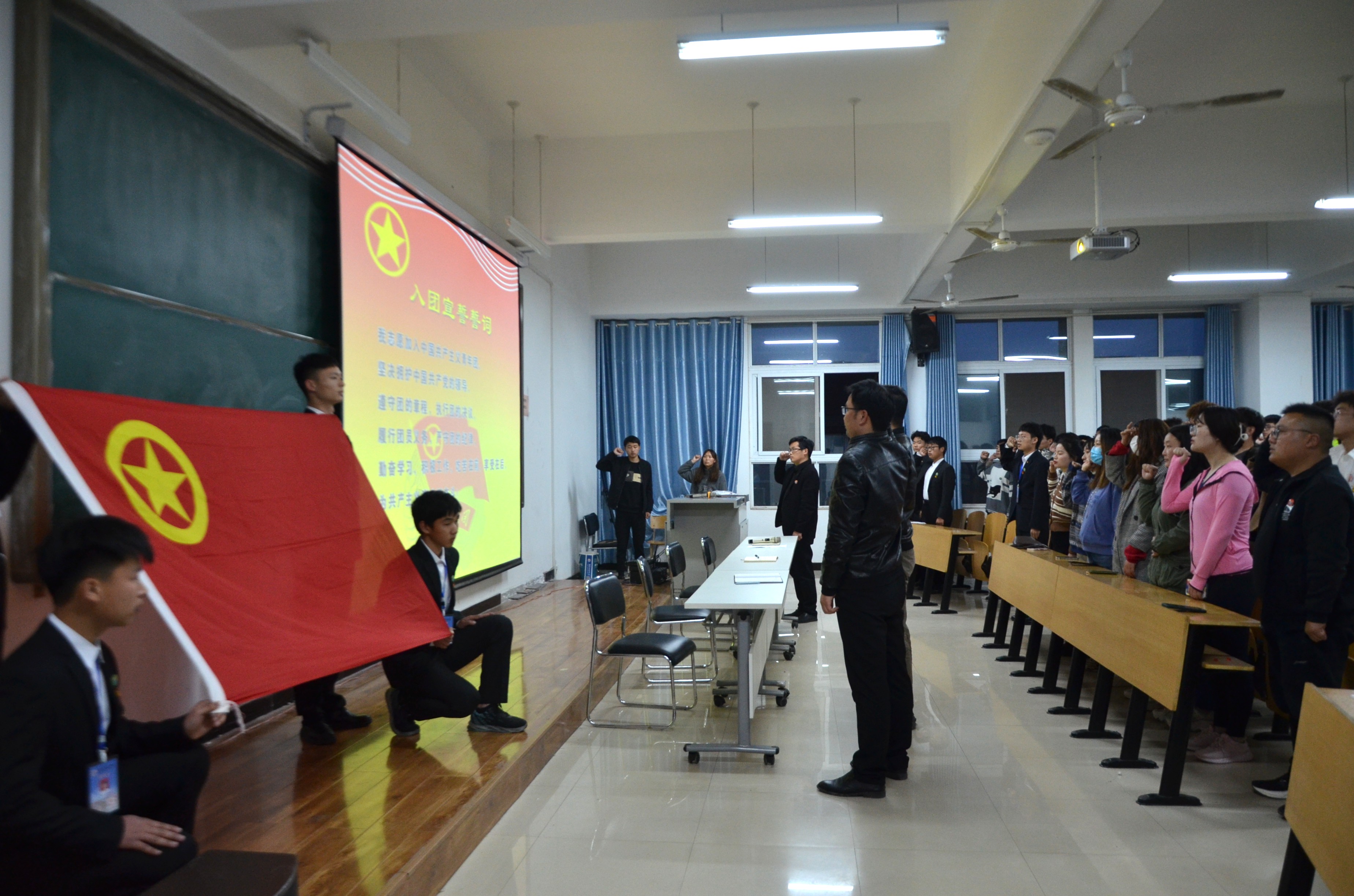 紧接着,由优秀共青团员代表储昊、新入团代表李人杰上台发言,虽然入团时间不同,但是不忘初心、牢记使命的社会责任感和艰苦奋斗勤奋创新的历史担当却永恒不变。