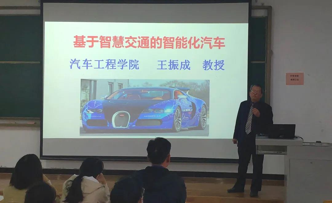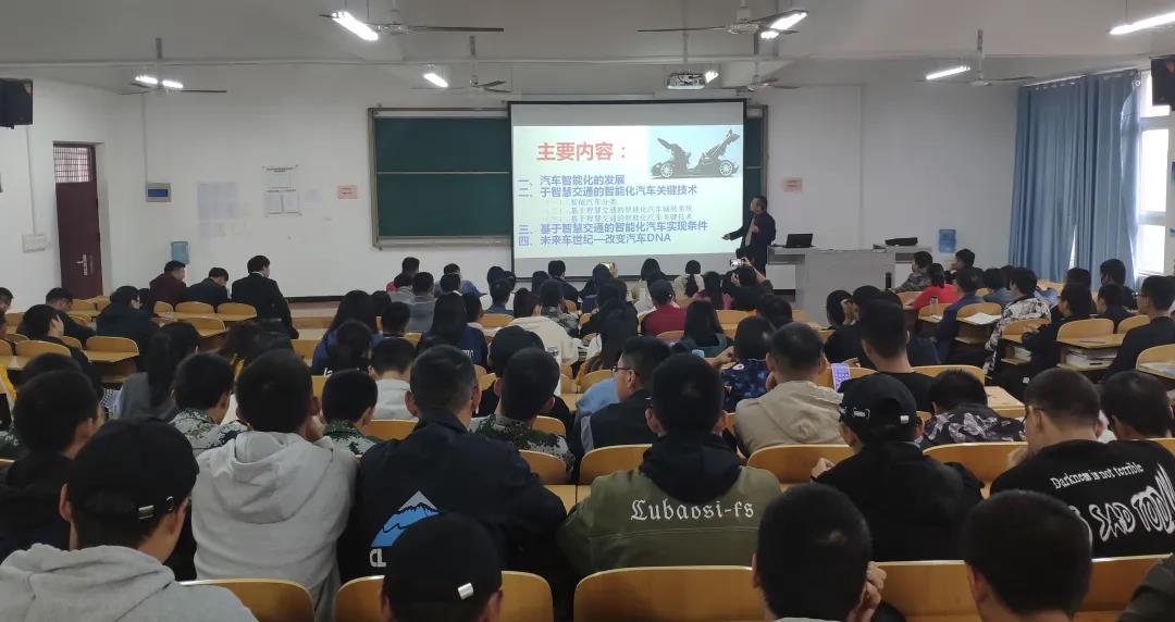 王教授在师生热烈的掌声中阐述了汽车智能化的发展,基于智慧交通的智能化汽车关键技术和实现条件等方面的知识,表明了智能化汽车的在新时代社会的作用,以及在国际方面所带来的影响。