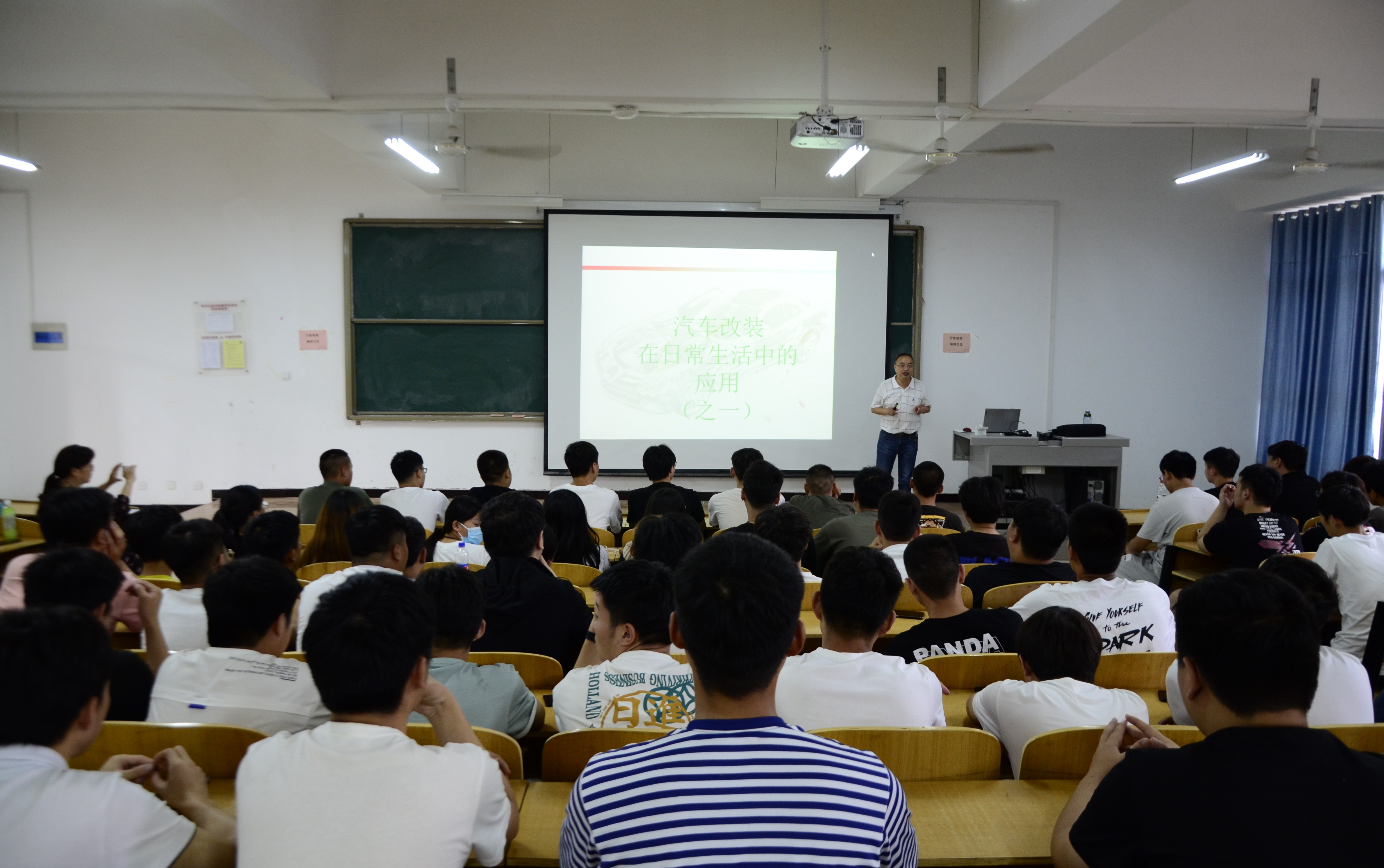 6月17日下午,beat365第九期汽车知识大讲堂在五号实训楼5402开讲。beat365闫金斗教授做《汽车改装在日常生活中的应用》专题学术讲座。