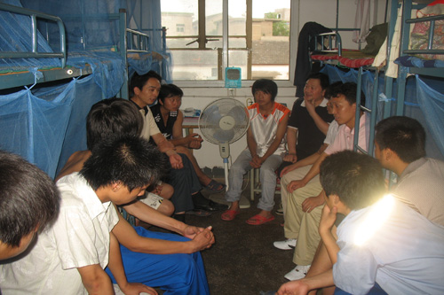 7月10日下午,他们一下火车,便不顾旅途的疲劳,就在“奇瑞班”管理老师司伟锋,辛广科的带领下,前往奇瑞公司员工生活区分别看望 “蓝领公寓”、“绿叶公寓”和“皖医公寓”入住的219名“奇瑞班”员工。他们深入宿舍,与员工促膝交谈,详细了解他们的实际情况;与员工一起舒胸怀,谈成长,论人生。同学们看到公司老师分外亲切,争向老师倾诉衷肠,诉说着他们在工作学习上的困惑和成绩,生活上的喜乐和哀伤。他们紧紧地围绕在老师身旁,认真倾听着教诲和嘱托,满眼都是真诚的渴望和无限的感激。