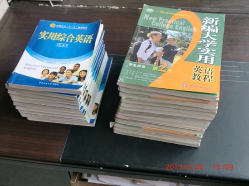 在我系09级员工中,有近百名同学是大中专员工,他们的英语应用能力相对其他班级员工有所欠缺,为了进一步提高和锻炼他们在英语方面听说读写的能力,系领导倡导08级员工自愿将其大学的英语教材及相关参考资料,于双节之际作为一份节日礼物,真情馈赠给自己的师弟学妹。
