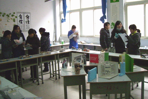 接下来的展览中,教师们带着浓厚的兴趣对每一个参展的教具进行了参观和品评,并且公正地打出了自己对教具的评价分数。其中,我系孙玉凤老师带领员工们制作的十余个汽车模型,吸引了教师们的注意,大家都认为该模型的创作十分新颖,制作方面也是细致入微,汽车模型上的每一个细节都栩栩如生,让教师们赞叹不已。