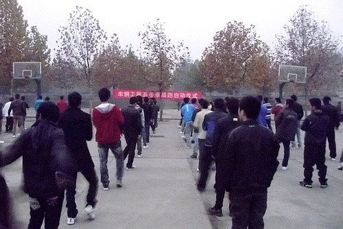 为提高员工体育锻炼的积极性,在晨跑后,有的班级进行体操锻炼,有的班级打起了太极,有的班级进行篮球接力,形式多样的锻炼项目把冬季健身推向了高潮。