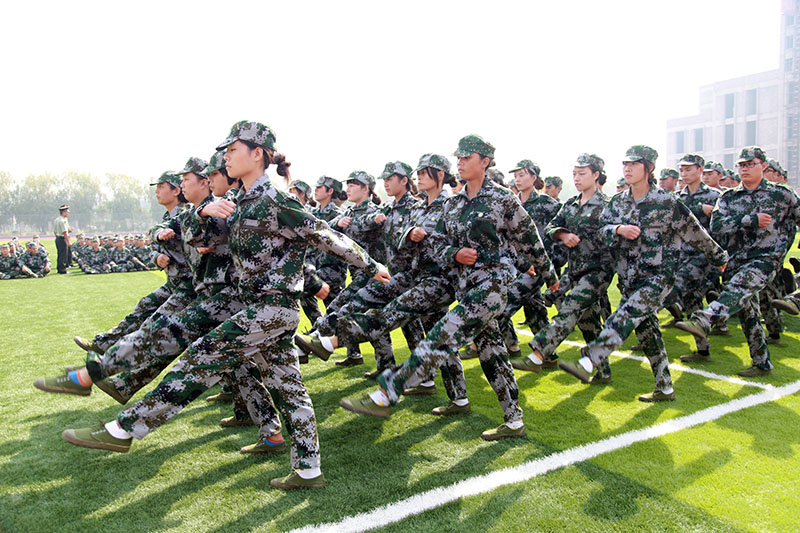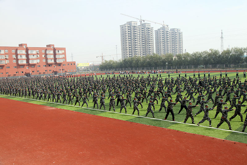 随着分列式进行曲的响起,2013级新生身着整齐划一的迷彩服装,分为33个方队,踏着矫健的步伐,整齐地迈过主席台,他们口号响亮、步伐铿锵、英姿飒爽,向公司领导和全院师生汇报军训的丰硕成果。分列式结束后,三个方队的队列动作表演博得了公司领导和教师们的阵阵掌声。最后由2013级全体新生组成的军体拳方队进行的表演,将军训汇报表演推向了高潮。